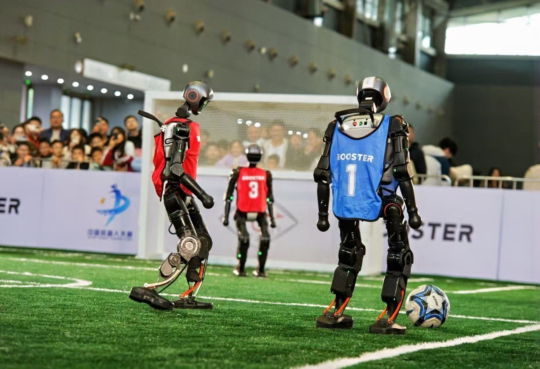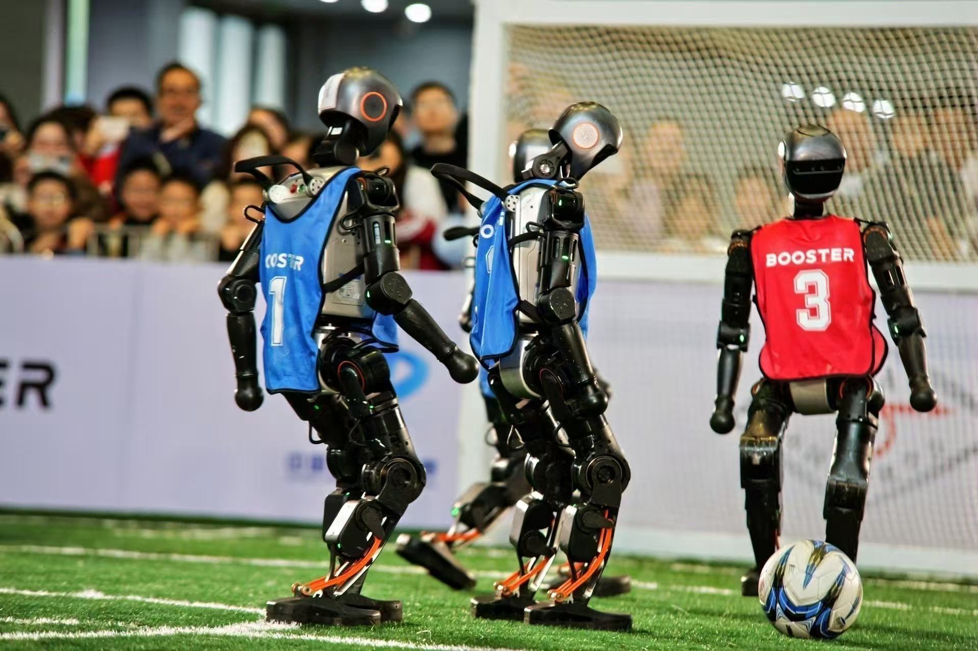 比赛中,久经世界顶级赛事检验的 BOOSTER T1,为参赛团队提供了稳定、可靠、精准的开发与竞技平台。其拥有 23 个自由度,可实现全向行走与自主起身;依托本体携带的深度相机,还具备感知与定位功能,能在高强度机器人足球对抗中读取赛场环境,实时优化传球路径、精准调节射门角度,且各“球员”可通过通讯系统传递赛场信息、默契配合。此外,BOOSTER T1 搭载 200 TOPS AI 算力与开源算法库,支持结合端侧大模型,非常适合高校团队用于比赛、创新算法研发及积累赛事经验。