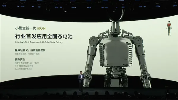 IRON 搭载三颗图灵 AI 芯片,总算力达 2250 TOPS,支持多模态对话、视觉识别与交互行为决策。能源方面采用全固态电池系统,实现轻量化与高安全特性。机器人运行基于小鹏自研的物理世界大模型体系,融合 VLT(视觉语言运动模型)、VLA(视觉语言动作模型)与 VLM(视觉语言感知模型)三大核心能力,可在复杂环境中实现实时感知、理解与反馈。
