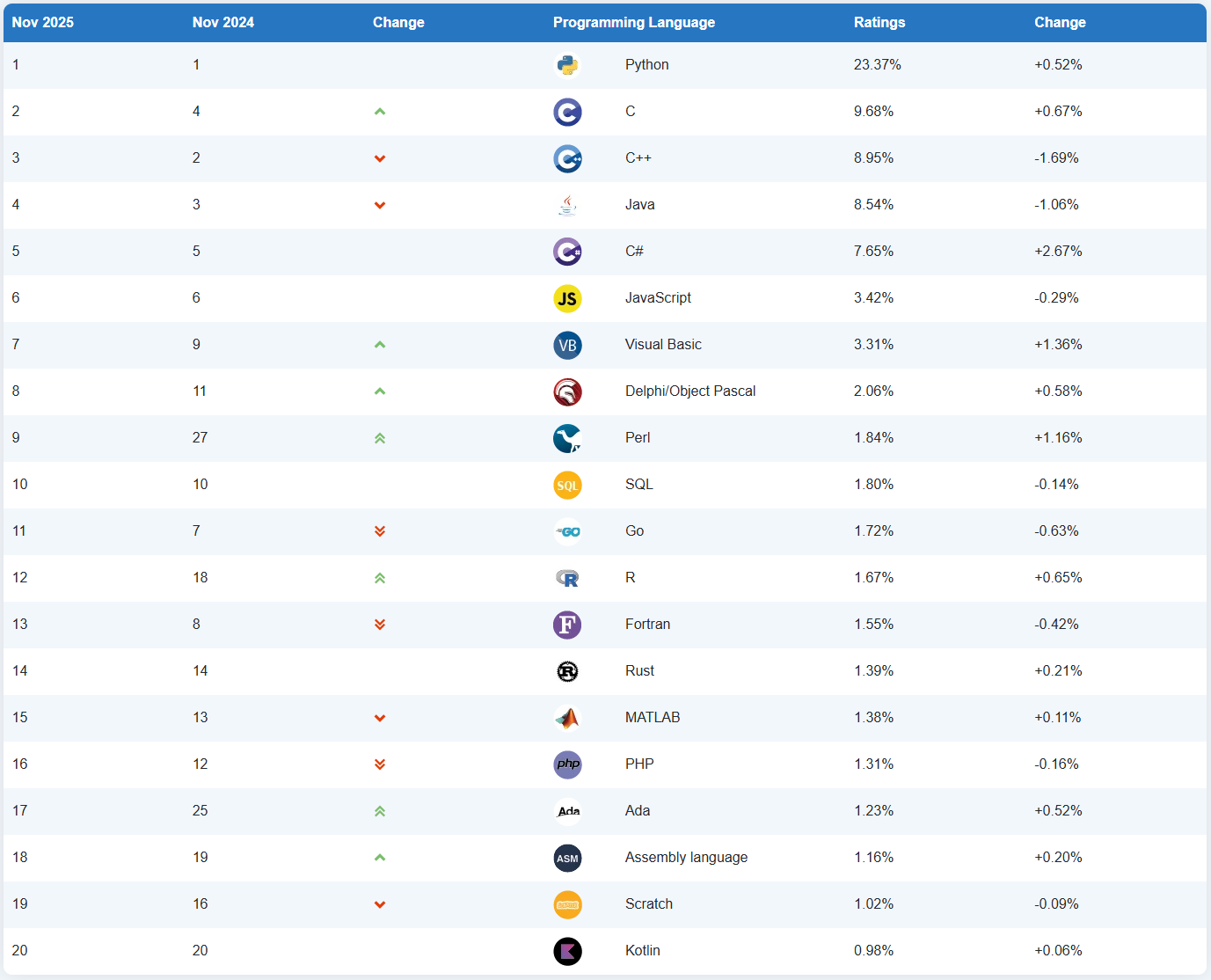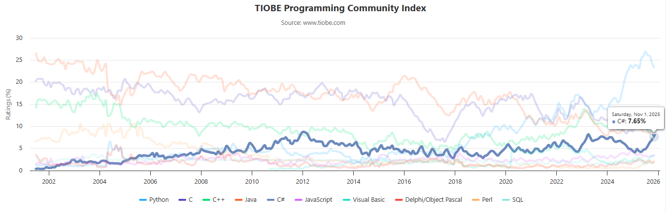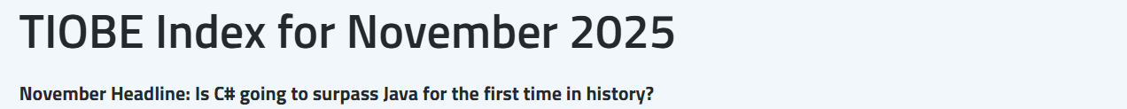 TIOBE 公布了 2025 年 11 月的编程语言排行榜。