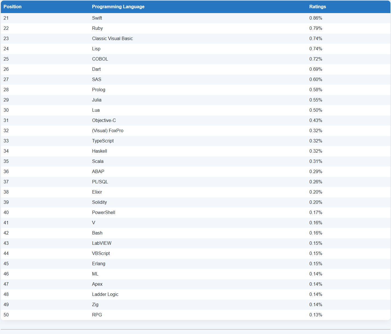 第 21-50 名编程语言排行